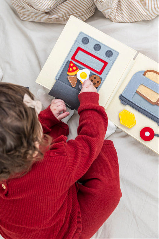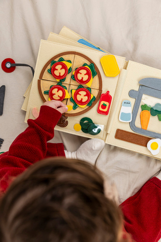 A könyv minden oldalán más-más interaktív konyhai helyzet várja: pakolás, főzés, válogatás, eszközök felismerése.